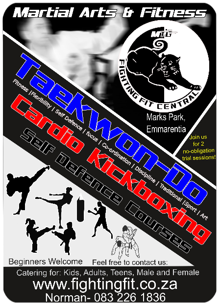 Offering: Martial Arts (ITF Taekwon-Do including hybrid self defence) & Cardio Fighting Fit Kickboxing class